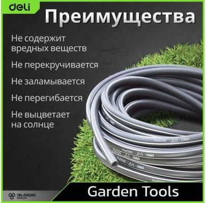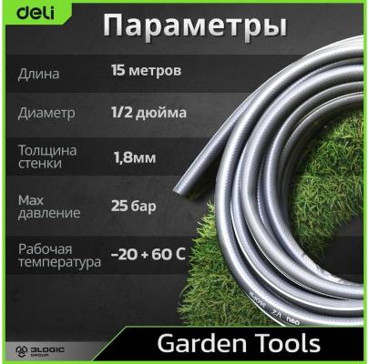 Шланг поливочный армированный Deli DL8072-15 15 метров, 1/2", 4 слоя, давление до 25 бар, серый