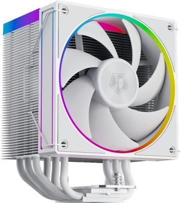 Над алюминиевым радиатором системы охлаждения ID-COOLING FROZN A610 ARGB WHITE находится вентилятор с разъемом подключения 4-pin. Рассеивая тепло, он совершает от 500 до 2000 об/мин в зависимости от нагрузки ЦПУ. В кулере применена многоцветная ARGB-подсветка со светодиодами, вмонтированными в корпус вентилятора и в декоративную накладку.