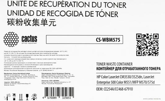 Бункер Cactus CS-WBM575 (CE254A/CC468-67910) для HP CLJ CM3530/3525dn, LJ Ent 500 Color M551 36000стр.