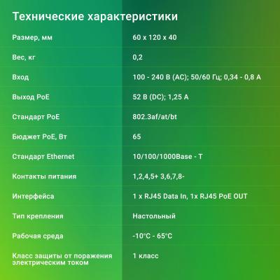 Инжектор PoE Digma DNP65W52GTXP 10/100/1000BASE-T 65Вт 100-240В(АС)