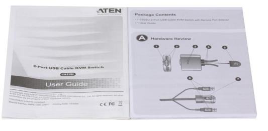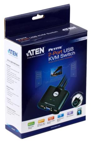 Переключатель KVM ATEN USB+VGA = 2 cpu USB+VGA, 2048x1536, настол., исп.стандарт.шнуры, без OSD (CS22U-A7|)