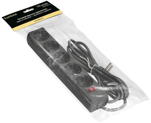 Сетевой фильтр ExeGate SP-5-10B (5 евророзетки с заземлением, 10м, защита от перегрузки, выключатель с подсветкой, черный)