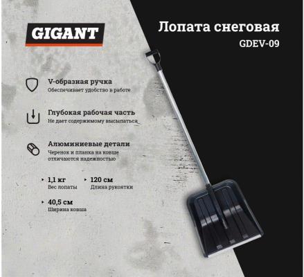 Gigant Лопата снеговая "Акронис" в сборе с алюминиевым черенком и V-ручкой GDEV-09