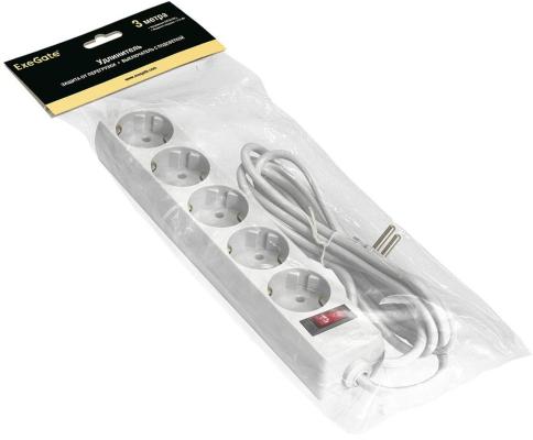 Удлинитель ExeGate EC-5-3W (5 евророзеток с заземлением, 3м, защита от перегрузки, выключатель с подсветкой, белый)
