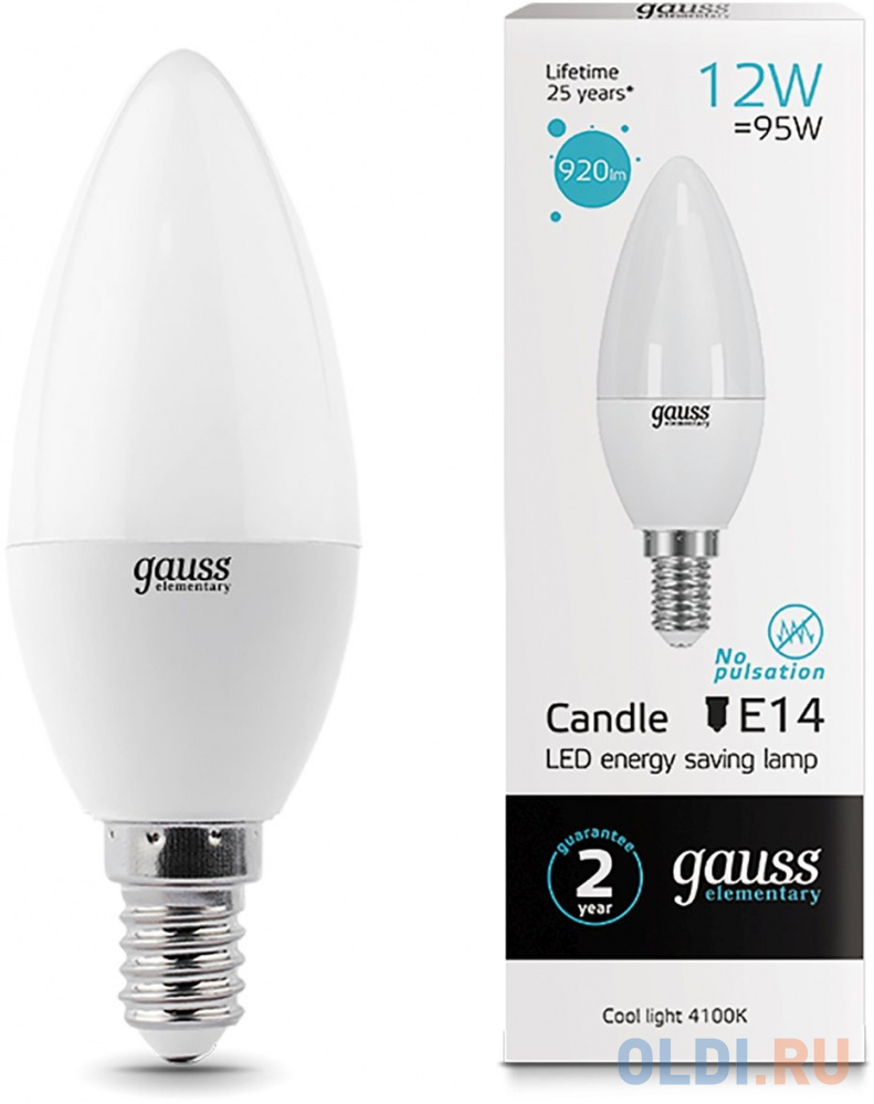 Лампа светодиодная Gauss Elementary 12Вт цок.:E14 свеча 220B 4100K св.свеч.бел.нейт. C37 (упак.:10шт) (33122)![]()