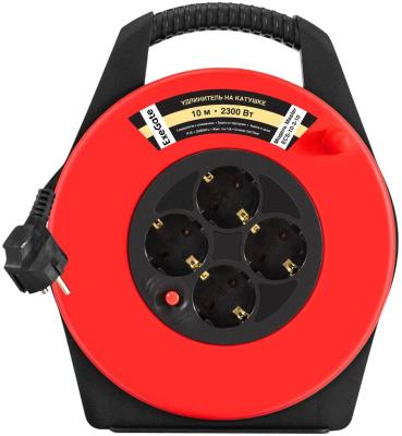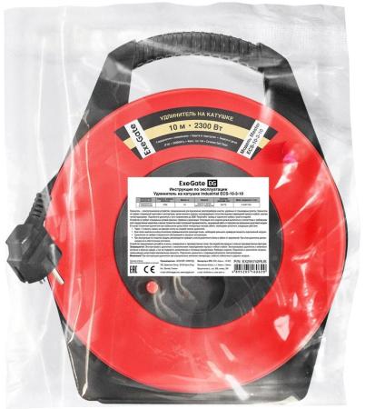 Удлинитель на катушке ExeGate Master ECS-10-3-10 (4 евророзетки с заземлением, IP20, 10м, защита от детей, защита от перегрузки, 3х0,75мм2, 10А/2.3кВт)