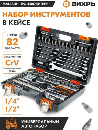 Набор инструментов Вихрь АВТО, 1/2" , 1/4" , CrV 82 предмета (жесткий кейс)