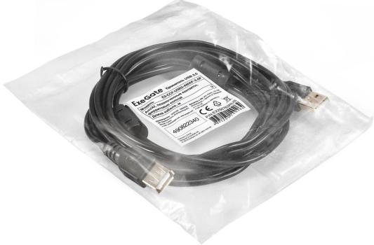 Удлинитель USB 2.0 ExeGate EX-CCF-USB2-AMAF-3.0F (Am/Af, позолоченные контакты, ферритовые кольца, 3м)