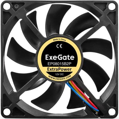 Вентилятор 12В DC ExeGate ExtraPower EP08015B2P (80x80x15 мм, 2-Ball (двойной шарикоподшипник), 2pin, 2600RPM, 26dBA)
