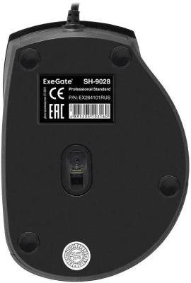 Мышь ExeGate Professional Standard SH-9028 (USB, оптическая, 1000dpi, 3D, 3 кнопки и колесо прокрутки, длина кабеля 1,5м, черная, Color Box)