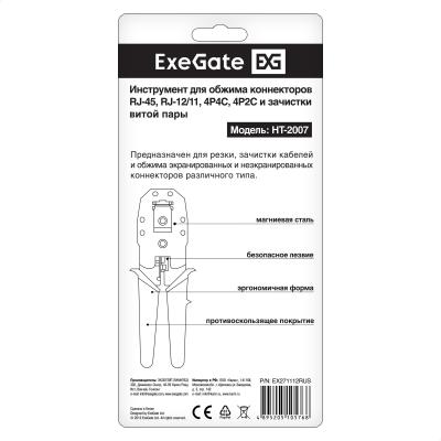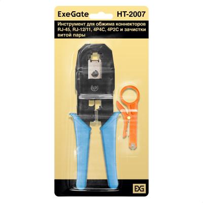 Инструмент ExeGate HT-2007 для обжима RJ-45, RJ-11/12, с инструментом для зачистки в комплекте (монтажный нож для розеток)
