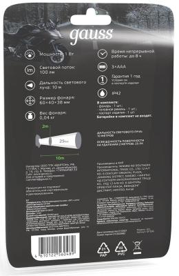 Фонарь налобный Gauss GFL306 черный 1Вт лам.:светодиод. AAAx3 (GF306)