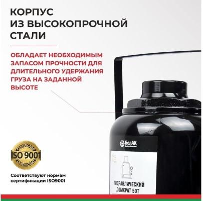 ОписаниеДомкрат БелАК 50 т БАК.00051 разработан российским производителем «БелАК», награждённым двумя национальными премиями «Автокомпонент года» и «Автоаксессуар года» за высокое качество и надежность выпускаемых домкратов. Продукция «БелАК» соответствуют нормам сертификации ISO9001 и ЕАС.
