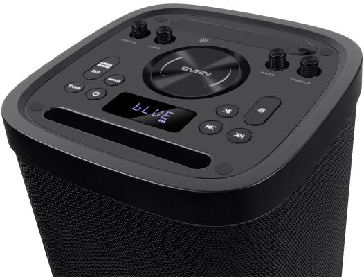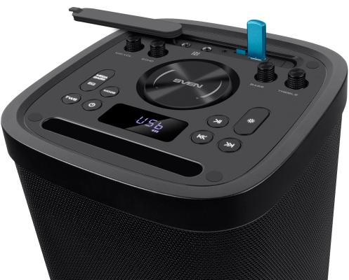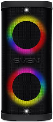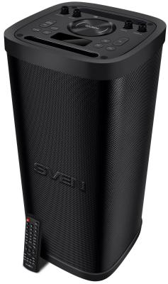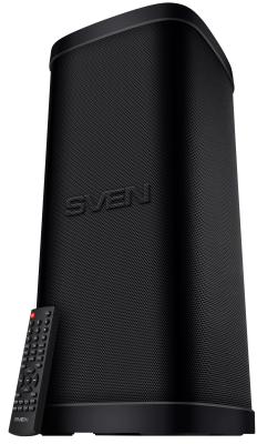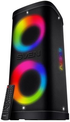 Мобильные колонки SVEN PS-930 2.0 чёрные (2x75 W, mini Jack, 2 х 6.35 мм Jack, USB, Bluetooth, FM, micro SD, ПДУ, 7200 мA, LED подсветка)