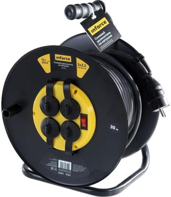Катушка удлинителя Inforce 4 гнезда, с/з КГт 3х2,5 16A 30м IP44 GRANITE ZG 09-15-03 выполнена из первичного полипропилена.