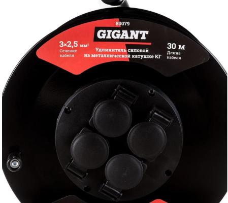 Дополнительно *Силовой удлинитель Gigant на металлической катушке КГ 3x2,5 30 м 80079 предназначен для удаленного подключения электроинструмента. Катушка облегчает хранение, транспортировку и эксплуатацию кабеля. Удлинитель можно применять на стройках, на производстве, а также на открытом воздухе. Удлинитель снабжен защитными крышками на розетках, они позволяют защитить контактную группу по стандарту IP44 (защита от попадания случайных брызг и капель воды, от проникновения твердых предметов). Длина кабеля - 30 метров. Удлинитель оформлен 4 розетками 16 А. Сечение провода - 3х2,5 мм.