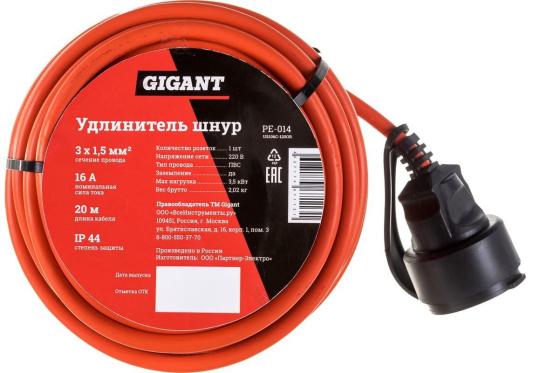 Gigant Удлинитель шнур с/з ПВС 3х1,5 16A 20м IP 44 PE-014