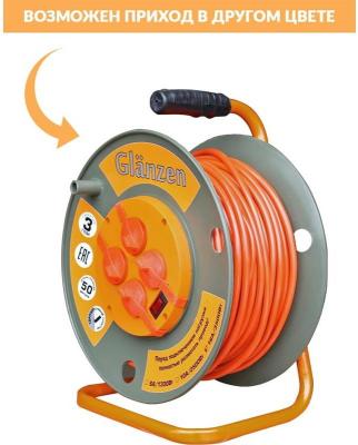 GLANZEN Удлинитель силовой на катушке 4 гн. 50 метров ПВС 3x1,5 IP44 EB-50-007 00012294