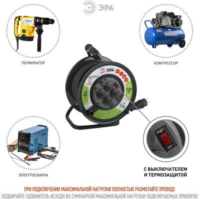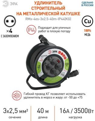 ЭРА Удлинитель силовойRMx-4es-3x2.5-40m-IP44(KG) на металлической катушке c заземлением 4 розетки 40м КГ 3х2.5мм2, Б0043059