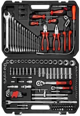 Прочие особенности и свойстваПрофессиональный набор инструментов 147 предметов AV Steel AV-011147 применяется для выполнения слесарных работ и монтажных работ. Все составляющие комплекта изготовлены из хромованадиевой стали с матовом покрытием. Головки оснащаются насечкой для удобства работы. Прочный пластиковый кейс обеспечивает компактное хранение инструмента.
