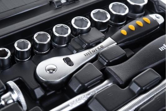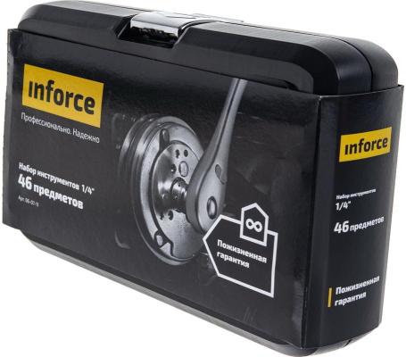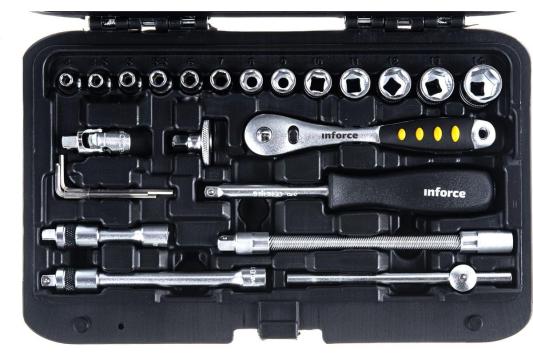 Прочие особенности и свойстваНабор инструментов Inforce 46 предметов 1/4" Inforce 06-07-11 - многофункциональный комплект, предназначенный для работ с крепежом. Уникальная запатентованная конструкция трещотки гарантированно выдерживает высокие нагрузки. Улучшенный профиль торцевых головок успешно справляется с крепежом, грани которого деформированы на 85%. В комплекте поставляется специальная насадка, которая используется с трещоточным ключом и позволяет открутить/закрутить гайку/болт быстрее, чем обычная трещотка без этой насадки.