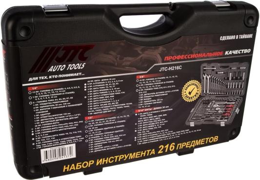 Прочие особенности и свойстваНабор инструментов 216 предметов JTC H216C-B72 охватывает большинство типовых размеров крепежа и позволяет работать с различным усилием за счет трех трещоток и большого количества переходников. Комплект инструмента подойдет для автомобилистов.