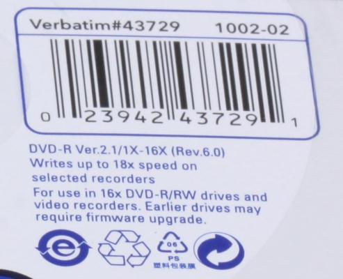 Диск DVD-R 4.7Gb Verbatim 16x Shrink/10 43729