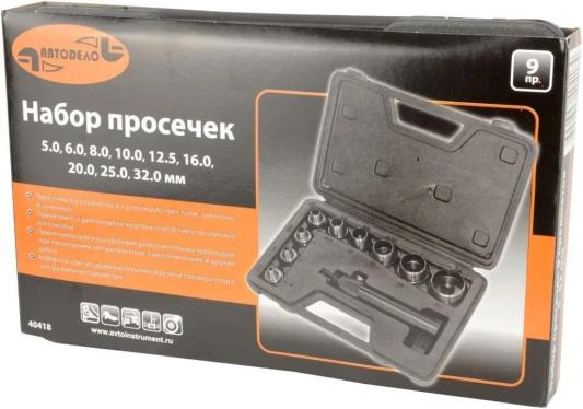 Прочие особенности и свойстваНабор просечек в пластиковом футляре Автоdело 5.0-32.0 мм 10 предметов 40418 12635 позволяет делать ровные отверстия круглой формы в разных материалах.