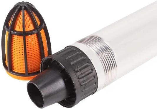 Внешний съёмный фильтр предотвращает попадание грязи и песка. В случае загрязнения достаточно промыть фильтрующую сетку. Фильтр не случайно имеет форму конуса. Такая конструкция значительно облегчает процесс опускания насоса в скважину при «ступенчатом» соединении обсадных труб.