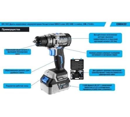 Дрель-шуруповерт Deko Loner 20V ONE аккум. патрон:быстрозажимной (085-1003)