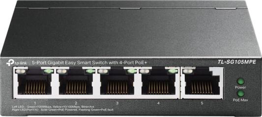 TP-Link TL-SG105MPE, Коммутатор Easy Smart с 5 гигабитными портами (4 порта PoE+), 802.3af/at, бюджет PoE — 120 Вт, стальной корпус