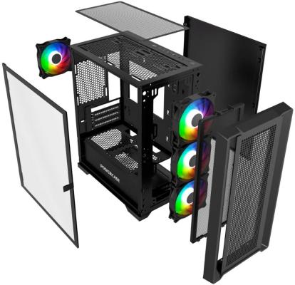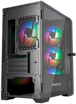 Powercase Alisio Micro X4B V2, Tempered Glass, 4х 120mm ARGB fans, ARGB HUB, чёрный, mATX (CAMCXB-A4)