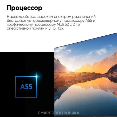 Прочие особенностиНасладитесь исключительной четкостью изображения благодаря нашему дисплею с разрешением 3840 x 2160 пикселей, на котором важна каждая деталь. Насладитесь красотой, заключенной в мельчайших деталях. Благодаря алгоритмам интерполяции кадров на миллисекундном уровне MEMC (оценка движения и компенсация движения) эффективно устраняет эффекты размытости, дрожания и отставания, вызванные высокоскоростным движением, безупречно запечатлевая каждый момент ваших любимых спортивных событий с предельной четкостью и плавностью. Благодаря своему уникальному алгоритму DTS Virtual: X преобразует двумерный звук в многомерную звуковую сцену, создавая ощущение высоты и пространства. Погрузитесь в насыщенный, детализированный звук, как никогда раньше, благодаря двойному декодированию Dolby Audio и DTS: X. Больше не нужно переходить от приложения к приложению. Google TV объединяет фильмы, шоу и многое другое из всех ваших подписок, поэтому они в одном месте. Вам нужно вдохновение? Получайте рекомендации от кураторов, используйте мощный поиск Google, чтобы находить шоу в более чем 10 000 приложениях, или просматривайте сотни бесплатных каналов. А благодаря персонализированным профилям каждый пользователь получает индивидуальный подход.