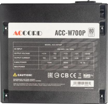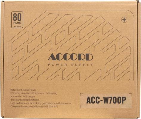 Блок питания Accord ATX 700W ACC-W700P 80 PLUS WHITE (20+4pin) 120mm fan 6xSATA RTL