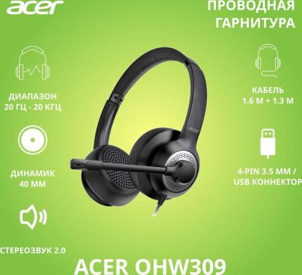 Наушники с микрофоном Acer OHW309 черный 1.6м накладные USB оголовье (ZL.HDSEE.004)