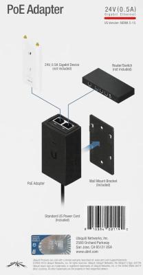 Ubiquiti POE-24-12W Блок питания РоЕ 24-12W, 24В, 0,5А, Passive PoE, LAN 1х100 Мбит/с