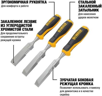 Набор стамесок DEWALT 3 шт, лезвие с дополнительной режущей кромкой 18, 2 DWHT0-16148