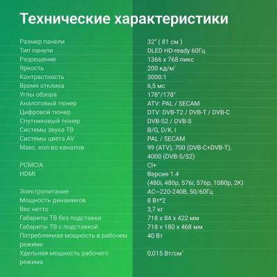 Телевизор LED Digma 32" DM-LED32SBB34 Салют ТВ Frameless Metal черный HD 60Hz DVB-T DVB-T2 DVB-C DVB-S DVB-S2 USB WiFi Smart TV