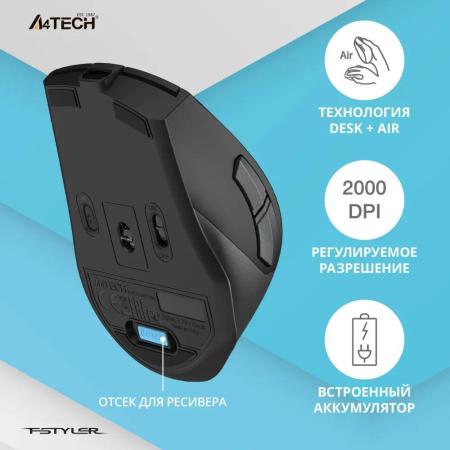 Мышь A4Tech Fstyler FB45CS Air2 серый оптическая (2000dpi) silent беспроводная BT/Radio USB (7but)