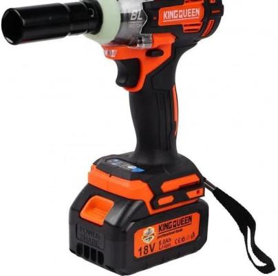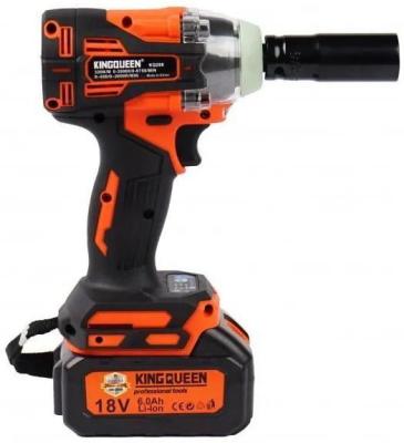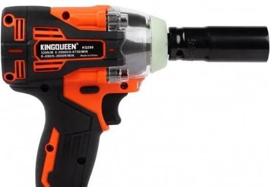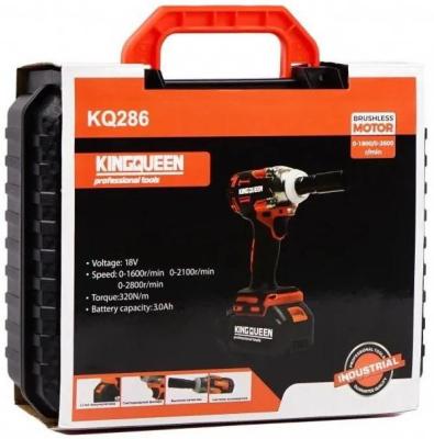 Прочие особенности и свойстваАккумуляторный гайковерт «KINGQUEEN» нужен для оперативного закручивания или откручивания гаек или болтов. Инструмент оснащен мощным бесщеточным двигателем с крутящим моментом 320 Нм, который разгоняет скорость вращения шпинделя до 2600 оборотов в минуту. Он оснащен кнопкой реверса для смены направления вращения, имеет 3 скорости переключаемые кнопкой, также плавную регулировку оборотов пусковой кнопкой и оснащен электрическим тормозом.