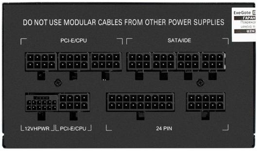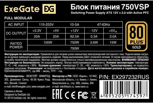 Блок питания 750W ExeGate 80 PLUS® GOLD 750VSP FС (ATX3.0, APFC, КПД 90% (80 PLUS GOLD), 120mm fan, 24pin, 2x(4+4)pin, PCIE5.0/12VHPWR, 4xPCI-E, 6xSATA, 3xIDE, 1xFDD, Full Cable Management, black, Color box)