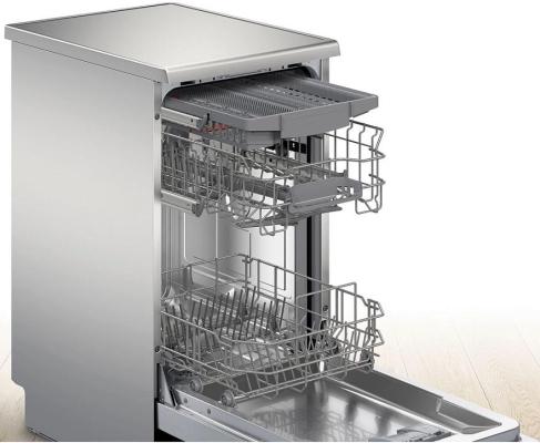 Отдельностоящая посудомоечная машина Bosch, 45 см, 10 комплектов, 10 программ, электронное управление, дисплей, отсрочка старта, уровень шума 46 дБ, энергоэффективность А+, цвет серебряный
