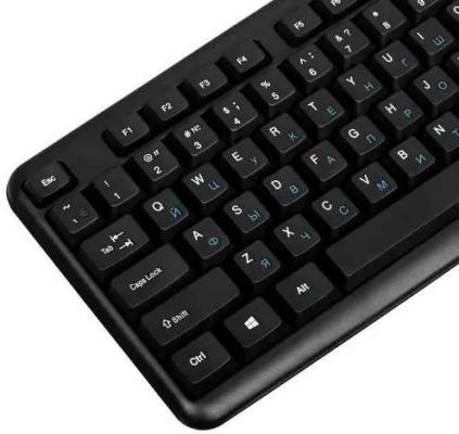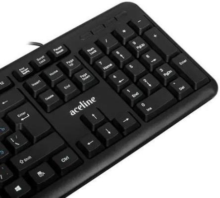 Прочие особенности и свойстваКлавиатура+мышь проводная Aceline KM-1208U представляет собой набор компьютерной периферии, базовый функционал которого обеспечит удобством при решении любых задач за компьютером. Классический дизайн, обеспеченный строгим черным цветом корпуса, гарантирует устройствам законное место на компьютерном столе дома или в офисе. Клавиатура из набора получила в свое оснащение 104 мембранные клавиши, включая цифровой блок для работы с числовыми данными. Она порадует практически бесшумным и тактильно приятным нажатием. Мышь из набора Aceline KM-1208U оснащена оптическим светодиодным датчиком для безупречного скольжения по любой поверхности компьютерного стола без необходимости приобретения коврика. Манипулятор облачен в корпус симметричной формы для уверенного и комфортного хвата любой рукой. Стандартная трехкнопочная конструкция позволит с комфортом работать мышью в любых приложениях на компьютере. Стабильное подключение к ПК гарантируют кабели двух устройств, предусматривающие на конце стандартный интерфейс USB.