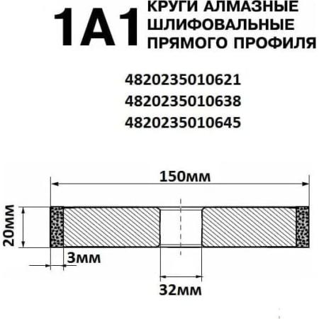 ПАИ Круг алмазный ПП 1А1 150х20х3х32мм 100/80 БАЗИС АС4 В201 4820235010621