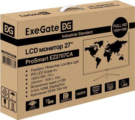 LCD ExeGate 27" EZ2707CA ProSmart {IPS 1920x1080 75Hz 5ms 250cd 1000:1 178/178 D-Sub HDMI DisplayPort Speakers VESA} [EX297650RUS]