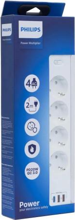 Сетевой фильтр Philips CHP4346WA/51 2м (4 розетки) белый (коробка)