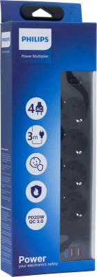 Сетевой фильтр Philips CHP4346BB/51 3м (4 розетки) черный (коробка)
