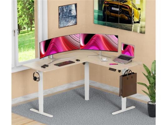 Стол для компьютера Cactus угловой подъёмный столешница МДФ белый дуб каркас белый 140x72x60см (CS-EDXL-WWD)