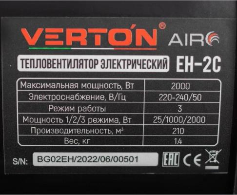 VERTON Электрический тепловентилятор Air EH-2C 220В, 01.5985.6761
