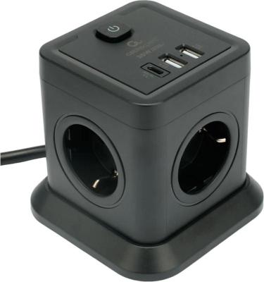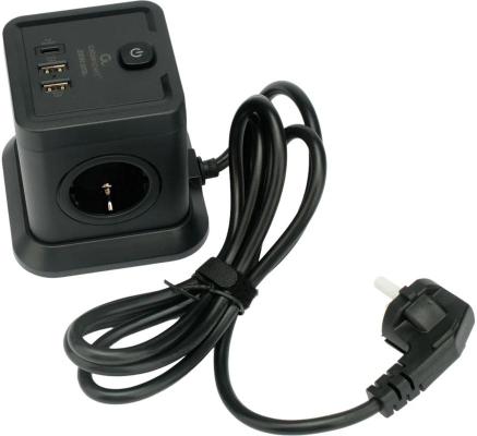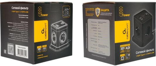 Cablexpert Сетевой фильтр Tower 4р, 10А, 1xType-C PD, 20Вт, 2хUSB, 2м, ур.защиты 2+, черный, коробка, TWR-4-CU2-B-2